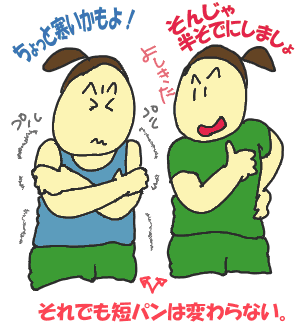 秋だから半そで?まさか冬はマフラー一枚じゃないでしょうね?