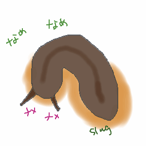 かたつむりだと可愛げに絵に描かれちゃったりするのに殻がないと全然可愛く無いこんちくしょうですね。