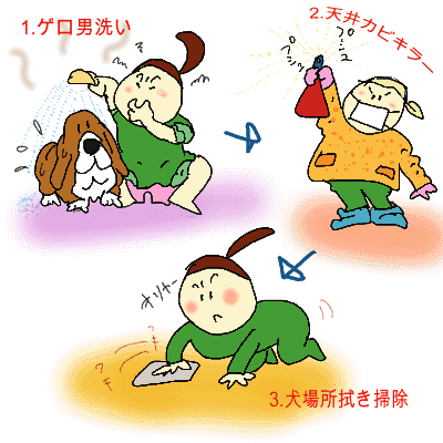 に伴ってゲロ拭き雑巾+カバー洗い。