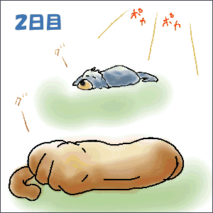 (エルビーちゃんの寝相だけが、3日間ずっと