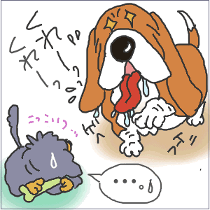 我家もヨーキーのうめちゃんとバセットのドディの同居生活。
