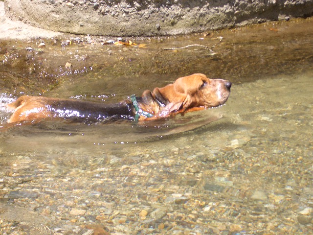 エルビーはいきなり泳ぎましたよ!しかも岩からダイビングもしました。