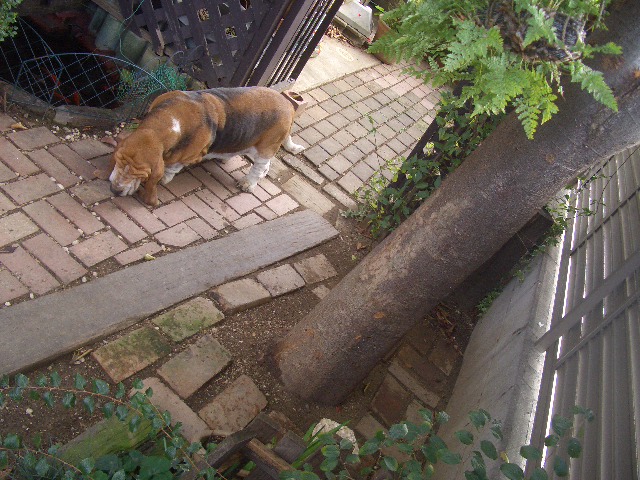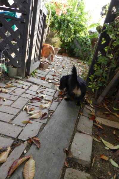 散歩中同じペースで後を着け、ほぼ3頭で歩いてました。