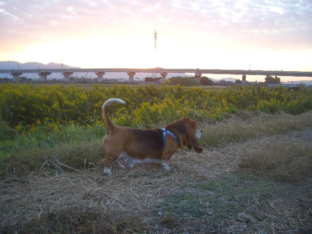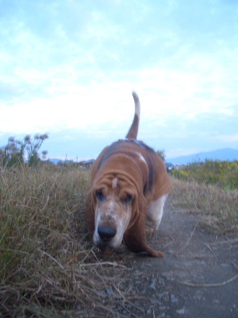 足長犬と歩くとどうしても