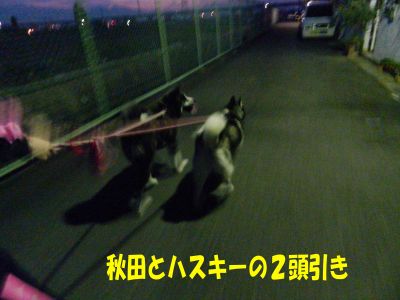 ハスキー&秋田のコンビはでかい体でも