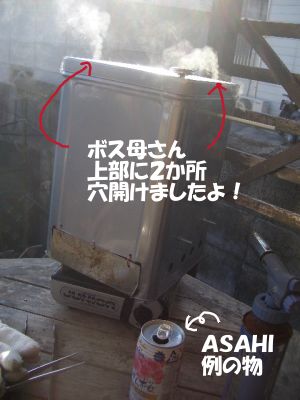 始めに一斗缶は空焼きしておきます。