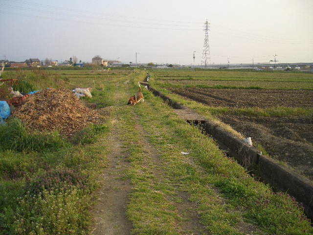 愛犬を走らせたい時は、田んぼで十分なんだも~んっ!